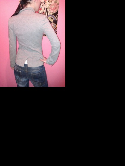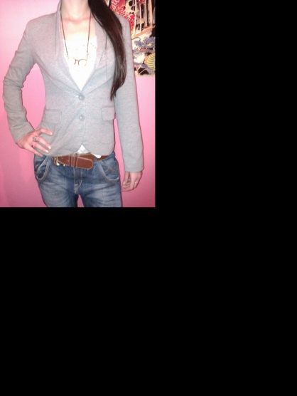 Prodám šedivé sáčko zakoupeno 20.12 v Pimkie s veškerými vysačkami a účtenkou. Počáteční cena 969,- bylo ve slevě za 480,-. Dostala jsem ho, ale bohužel je mi těsnější, tak posílám dál. Ramena mají vycpávky. Proužkovaná podšívka.