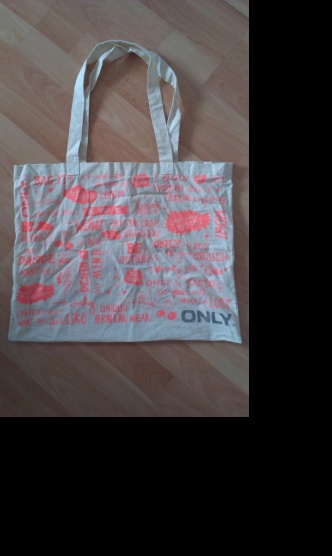 Látková - hadrová - plátěná taška značky Only. Barva tělová (světle béžová, písková) se sytě oranžovými nápisy a obrázky. Tašku jsem použila pouze jednou a to jen na chvíli. Je jako nová. Takový typ tašek bohužel nenosím a jen se mi válí ve skříni.