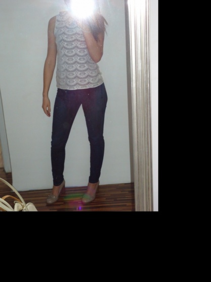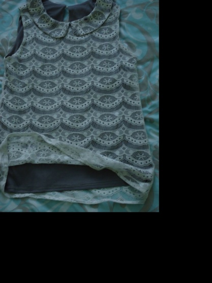 Tílko je párkrát nošené, ale necítím se v něm. Má šedou "spodničku" a na ní bílou jakoby krajku (viz. foto)