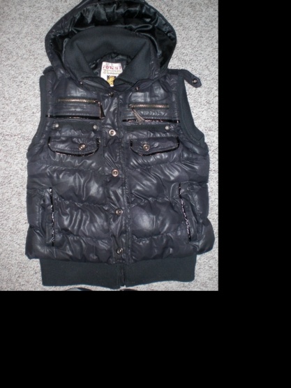 Vesta je tmavší než na fotce, více do černa, blesk to špatně osvítil. Takže potisk není tak výrazný. Je rok nošená a proto dávám tak nízkou cenu. Pořizovací cena byla 649,-