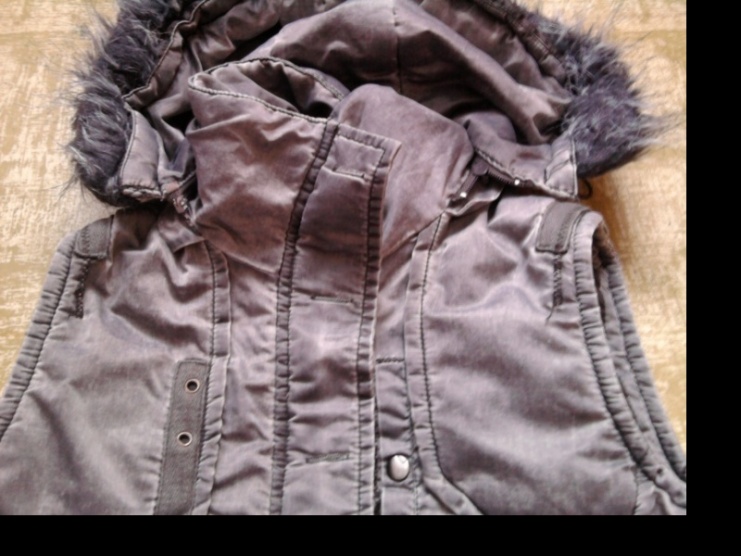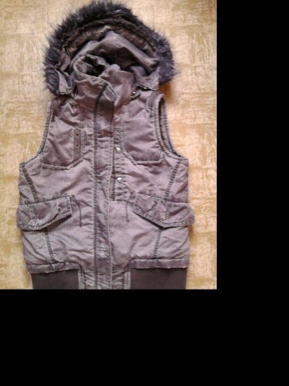 Prodám nádhernou vestičku barvy šedo štříbrná. Kapuce stahovatelná, kolem ní moderní kožíšek. Vesta je párkrát vzatá. Dole ukončená lemem. Barva odpovídá fotkám. Cena 200+ poštovné