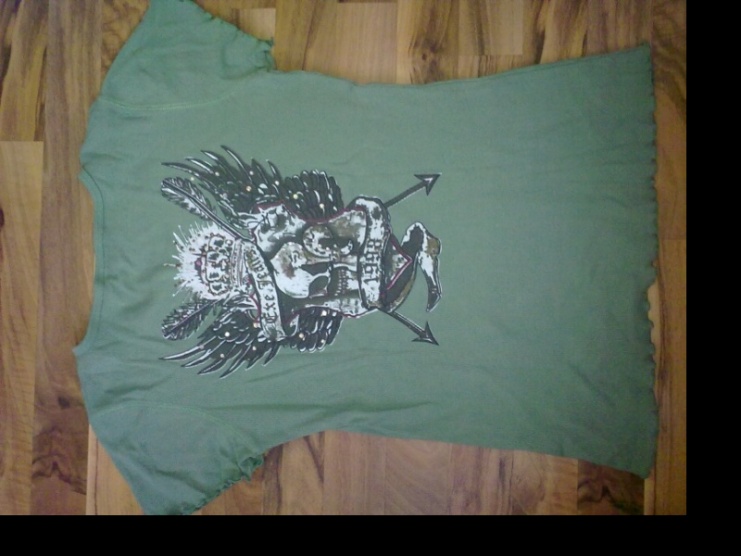 triko je na knoflíčky vepředu, dole malinko zřasené, vzadu potisk s aplikacemi.