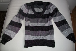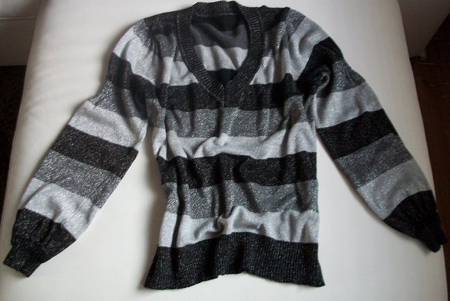 Krásný svetřík prošívaný stříbrnou nití. Velmi dobrý stav, zajímavě řešené rukávy.Cena včetně poštovného 140kč.