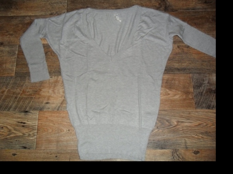 Predám velmi pekný svetrík šedej farby netopiereho strihu s výraznym výstrihom do Véčka.Kupovaný v Bershka top stav je raz oblačený.