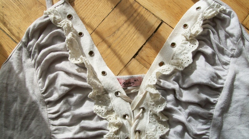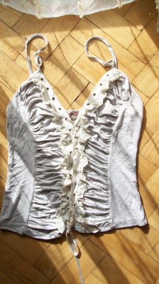 prodám pěkný elastický top ve prředu je šněrování zdobené kraječkou,krajka má barvu slonové kosti.