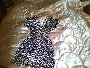nebo ty leopardí. v leopardovi bych na svatbu sice nešla - ale ten střih se mi líbí. je ho ale nutné pod prsy přepásat páskem. nevím, jak to vypadá na ženách více obdařených, já mám poprsí malé, a vypadá to dobře. s vysokými podpatky. ramínky nebo rukávy či co to je ležérně spadnou, celé se to trochu zřasí.