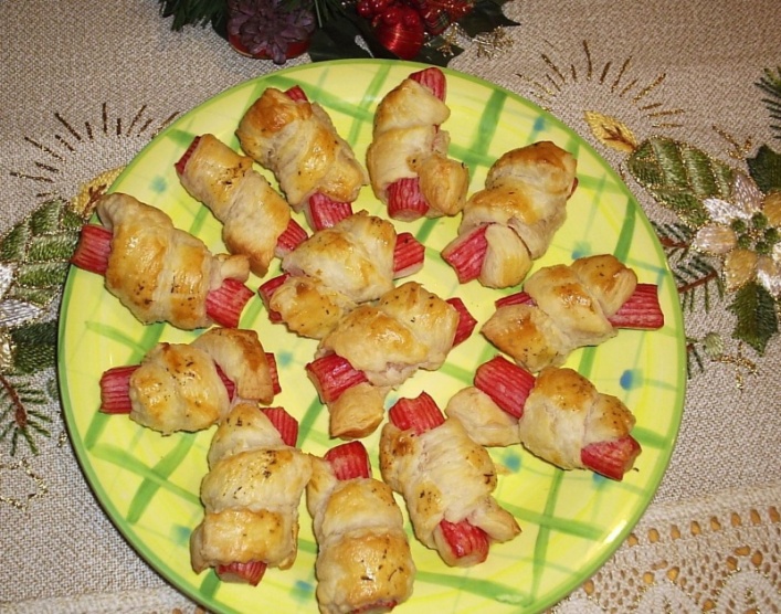 Kdo má rád "krabí tyčinky" může je obalit v listovém těstě a posypat provensálským (nebo jiným) kořením.