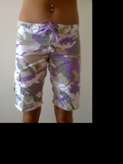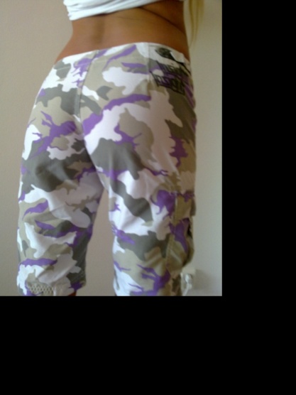 Prodám 3x nošené kalhoty. Dobrý stav. Vojenský motiv fialovobílé. Zip + zavazování na šňůrky. Velikost M