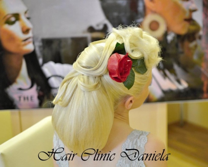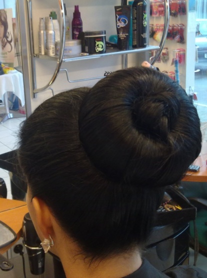 Edit: přidávám foto ještě ze salónu - ty vlasy uprostřed mi tam pak ještě nějak zašoupala, nepochopím jak, pže když si dělám tenhle drdol sama, tak si je obtáčím okolo.