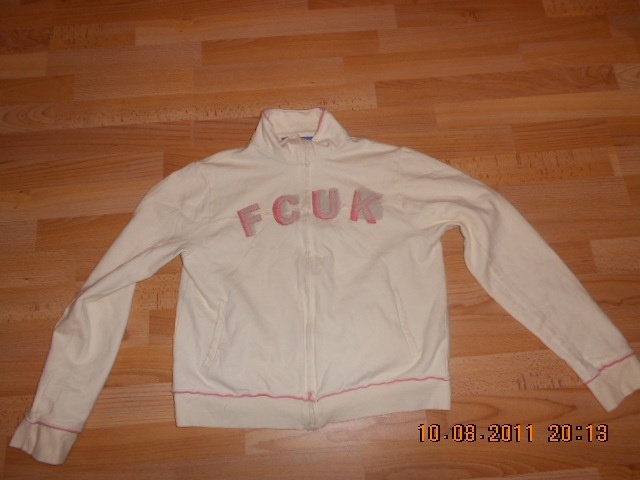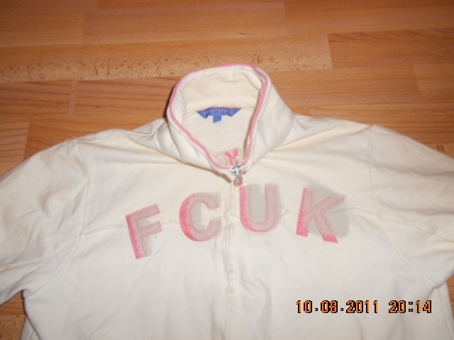 Moc pěkná mikna značky FCUK Jeans! Je nošená, ale velice zachovalá! Velikost je uvedena XL, ale řekla bych ,že odpovídá M/L, proto raději měřte! Šířka je 50cm, délka od ramene dolů ke spodnímu okraji je 54cm!