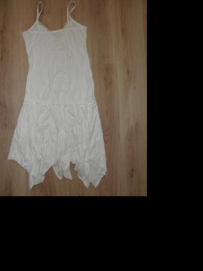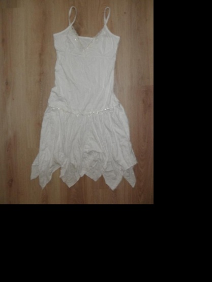 Krásné sněhobílé šatičky vel M/L zdobené flitry v dekoltu a v oblasti pasu jsou zmuchlaného vzhledu NEŽEHLÍ SE! a po vyprání se suší lehce smotané aby byl zachován zmuchlaný vzhled!jak je na posledním obrázku... šaty jsou nenošené jednou vyprané žádné známky obnošení!míry jsou...