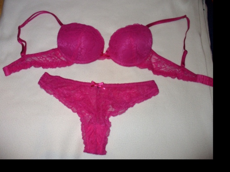 soupravička ,mnou jen vyzkoušená ,má odstřihlé cedulky,bohužel mě je větší.kalhotky velikost M.push up podprsenka s vyjímatelnými gelovými polštářky.cena 450+poštovné.