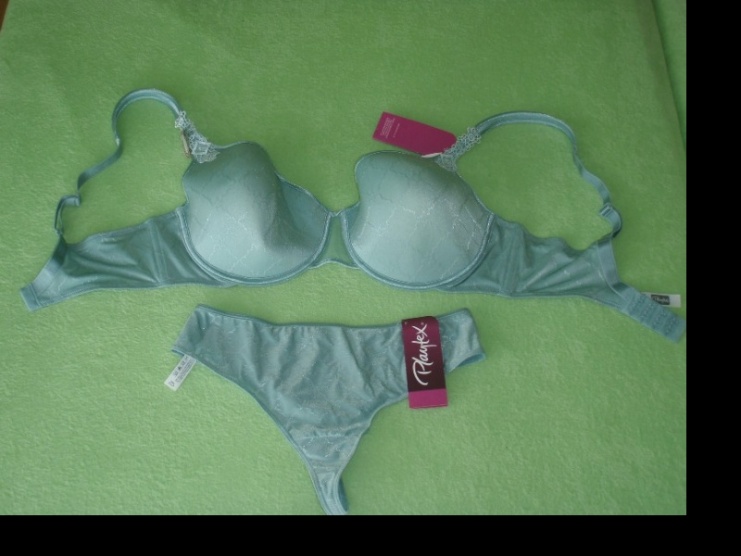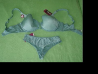Nádherná mentolově zelená soupravička Playtex, podprsenka vel. 40DD (naše 90E) a kalhotky vel. 40! Je úplně nová, ještě s cedulkami, kupovaná v Anglii, ale bohužel mi nesedí velikost! Podprsenka je vyztužená, dělá krásný tvar, ramínka jsou vyztužená, aby se nezařezávaly! Cena je 490,- vš. pošty