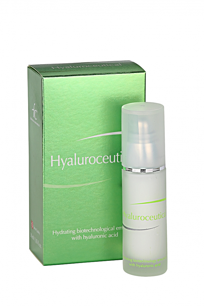 FC Hyaluroceutical hydratační biotechnologická emulze obsahuje kyselinu hyaluronovou z čistého zdroje ve dvou molekulárních velikostech, tzn. že proniká i do hlubších vrstev pokožky a hydratuje pleť zevnitř. Pro zvýšení omlazujícího účinku obsahuje emulze FC Hyaluroceutical navíc kombinaci peptidů, které viditelně zmírňují vrásky a předchází jejich tvorbě. Díky intenzivnímu vstřebávání a účinnosti přípravku se výrazně zlepšuje i přirozená rovnováha pleti a zachování její dlouhodobé pružnosti. S ohledem na uvedené pozitivní účinky patří přípravek do nejvyšší kategorie přípravků péče o pleť, mezi cosmeceutika.