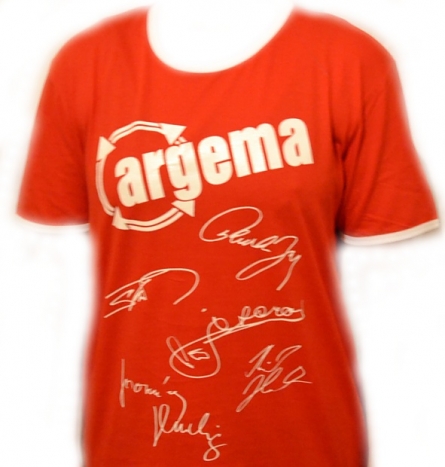 - 1. - 2. výhra – Červené tričko s podpisy členů kapely Argema