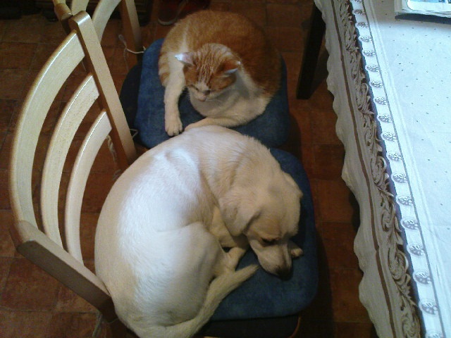 no nedá mi to a taky musím něco písnout. Nejdřív, že tu opravdu všechny máte krásný hafíky. My už o dva přišli, trochu nemocí a stářím, takže vím jaký to je. Většinou ten další naštěstí aspoň to prázdný místečko zaplnil. Teď máme už třetího, nebo spíš naši si ho pořídili a strašně rozmazlili, je to takový jejich zatím náhradní vnouče. Taky spinká u nich v posteli, ale jen o víkendu. On už to pozná, kdy je pátek a kdy může do postele. Je to neuvěřitelná "potvůrka rozmazlená" může skoro vše. Já bych ho taky někdy nejraději umačkala a z lásky pokousala...Nejsu divná???? Ale jediný co bych žádnýho psa nenechala je spat v posteli. Klidně vedle v pelíšku, když je zvyklej být doma a je to pokojovej psík, ale v posteli ne. Přítel je taky toho názoru. Zatím spolu nebydlíme, ale až budem, tak si určo nějaký mazlíka pořídíme. Zatím netuším co, ale naštěstí se taky na rase shodnem. No ono je to celkem jedno. Naši mají jak se říká "podkůlňáka", ale krásnýho. Vypadá jak štěně labradora a to už je mu 5 let. Zkusím přidat foto. Jinak si bez psa život představit nedovedu. A už vůbec nedokážu pochopit lidi co jim dokáží něco udělat. Ten náš když něco provede, tak stačí jen zvýšit hlas a už se třepe, takže ho ani plácnout nedokážu, i když to plácnutí je spíš pohlazení....občas si s náma opravdu dělají co chtějí, ale zase na druhou starnu by základní věci znát a umět měl....