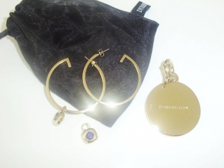 Prodám sadu náušnice+přívěsek na řetízek Dyrberg kern,náušniky jsou zdobené Swarovski křištálem-fialové barvy,přívěsek je oboustraný,vyrobeno z mosaze úprava IP TIN,23 karátové zlato,zapínání do ucha je z titánu.Původní cena 2105,- nyní 1000,- náušničky jsou ve výborném stavu,mnou párkrát nošené,bez vad.K náušničkám je také přívěsek placka z jedné strany zlato a vyrytý nápis Dyrberg kern a z druhé strany fialová barva s nápisem,viz foto.Cena přívěsku byla 1600,- nyní 990,- včetně poštovného.
