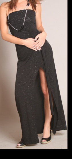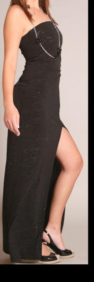 Černé šaty dlouhé až na zem, na boku rozparek. Posázené třpytkami. K nim patří do kompletu černé rukávky na stahování. Měla jsem je na sobě jen jednou v divadle, tak dvě hodiny, dovoluji si říct, že jsou jak nové, bez vad, naprosto v pořádku. Velikost S, ale možno i klidně XS až M. Jsou z natahovacího materiálu.Přizpůsobí se postavě.Stály 1550,- Značka Orsay. Nyní prodávám za 850,- i s poštou.