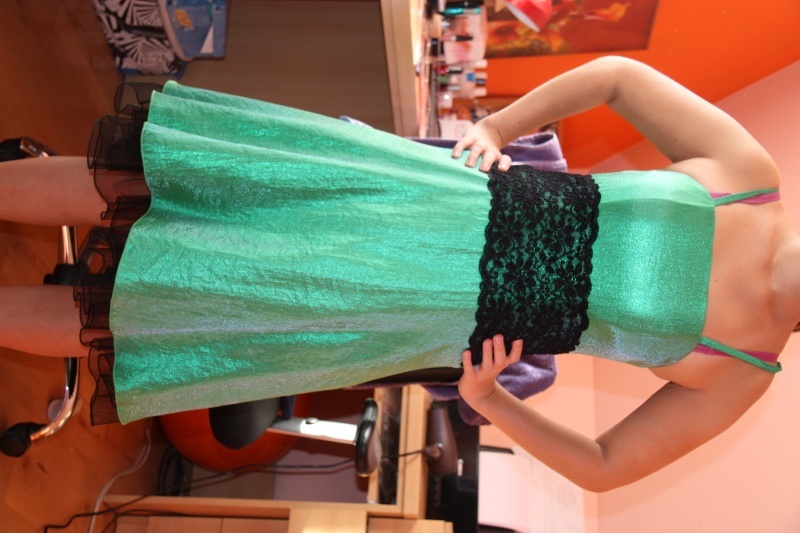 0Společenské, krátké šaty. Délka 1 metr od ramínek. Velikost 38. Materiál polyester. Zelený lesk. Krajka černá uprostřed. Černá podsuknička. Cena 500 Kč + 70 Kč doprava.