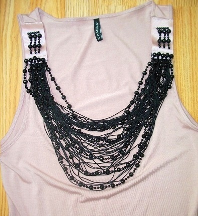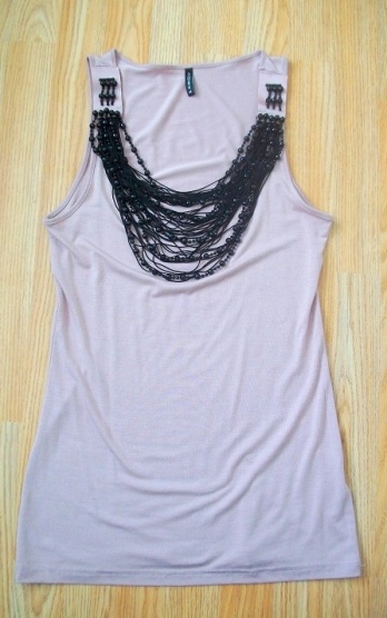 Nabízím nádherný top Amisu. Barvička je růžová, s černými korálky. Je pro štíhlounké holky, obtáhne každý detail těla, to si já dovolit nemůžu
