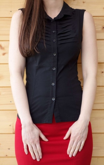 Strečová halenka se zajímavým detailem v horní části, délka 59 cm.