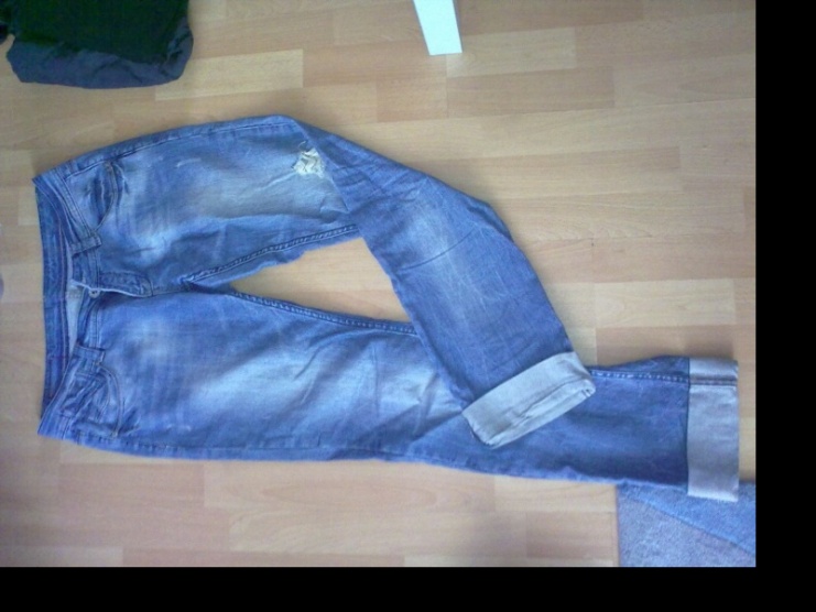 0Prodám nošené rifle z Kenvela,vel. L, dole s ohrnutými nohavicemi, na koleni módní trhání, velice stabilní materiál.