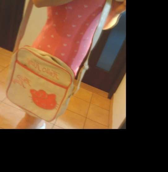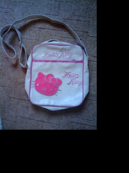 0Středně velká bílá kabelka přes rameno s růžovou kočičkou Hello Kitty nošená ale v dobrém stavu jen na jedné straně přišité poutko