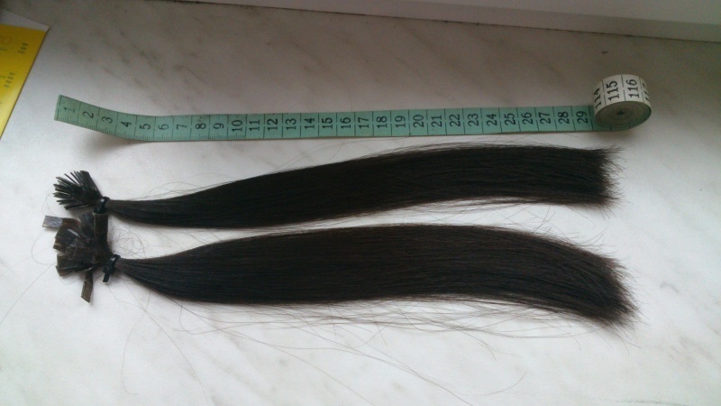 Středoevropské vlasy, 40 pramenů, délka 29cm. Kupované z dokonalých vlasů. Barva tmavě hnědá.
