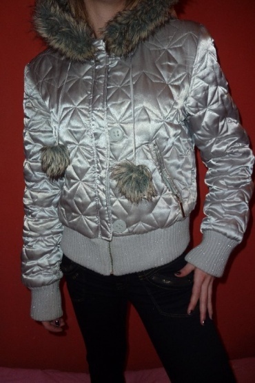Prodám zde zakoupenou stříbrnou bundu značky Terranova. Mnou nenošená, původní majitelkou ano, ale je v dobrém stavu. Upozorňuji, že má sem tam žmoleček (nic hrozného) a jednu díru uvnitř kapsy. Šikovná slečna zašije. Má kapuci s kožíškem a dvě huňaté bambulky. Snad se nebude původní majitelka zlobit za vypůjčené foto...