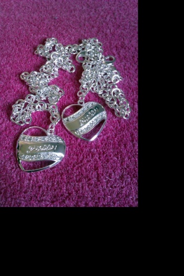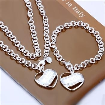Krásná stříbrná sada řetízku a náramku ve tvaru srdce. Dovezeno z USA.Délka 19 cm a 46 cmZájemkyně prosím SZ!