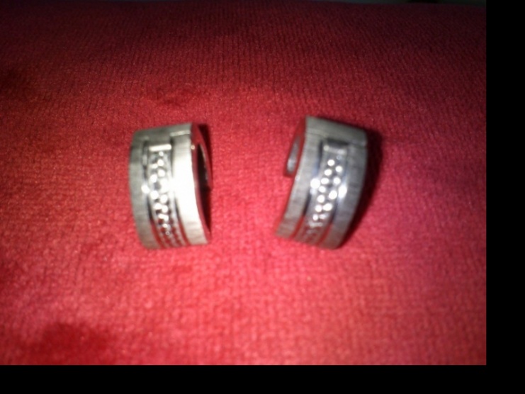 1Ahoj, prodám nové náušnice z chirurgické oceli. Jsou zdobeny tepaným vzorem připomínající kamínky. Moc krásné a slušivé. Náušnice jsou velké 13mm a šířka tlouštky kruhu je 6mm.