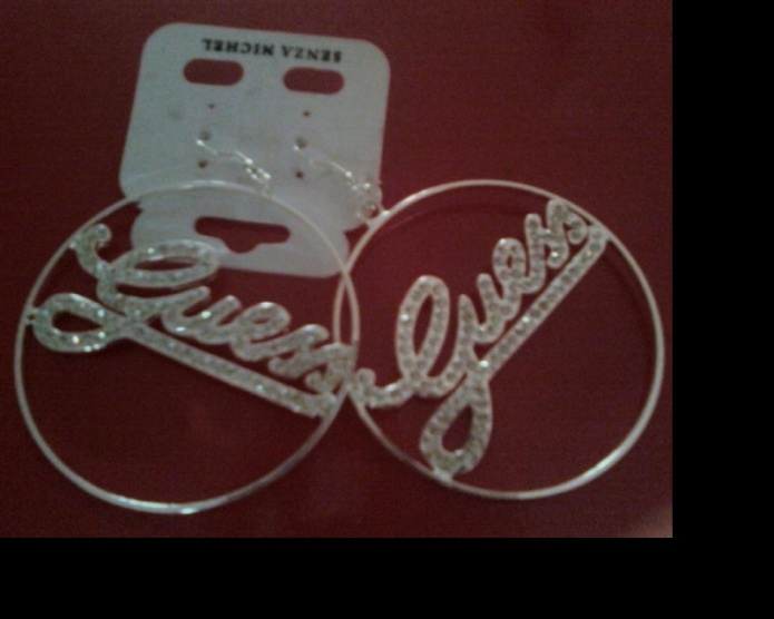 Úplně nové krásné naušnice guess, vykládané kamínky, průměr 6 cm. cena 340,-+ poštovné 40,-
