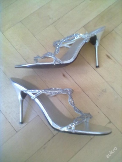 1Prodám stříbné společenská botky na vel. 38, ale hodí se spíše pro užší nožku, jsou ve výborném stavu výška podpadkuu 6 cm.
