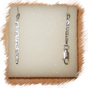 0Nabízím zajímavý stříbrný náramek na ruku, délka 18 cm, šíře článku 2 mm, stříbro ryzosti 925/1000. Perfektní stav. Cena 100kc (v ceně je i poštovný).Už nevyužiju, tak posílám dál.