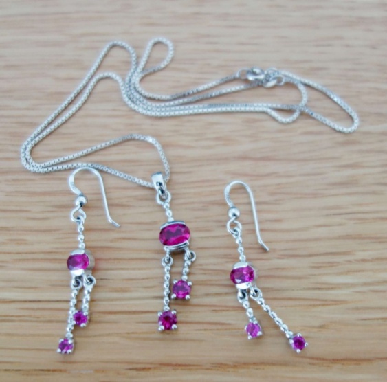 Stříbrný set s růžovými kamínky. Super stav! Pravé stříbro s puncem 925. Poštovné 44,-.