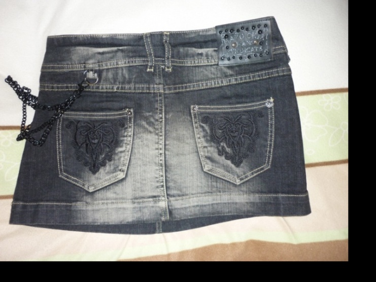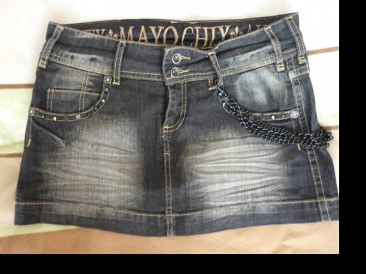 Prodám tuto sukýnku značky Mayo Chix z tmavé džínoviny. Sukně má krásné detaily, vzadu jsou vyšívané kapsy, vepředu u kapes kamínky + řetěz, který se dá oddělat. Nošená minimálně, takže top stav. Zhubla jsem a už ji nevynosím. Míry: boky 41cm, délka 32cm.