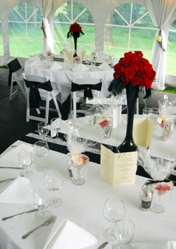 Jinak jsem na své svatbě měla sice tradiční barvu-bílou (původně jsem uvažovala o bordó), ale šaty byly poměrně dost sexy, "pruh" přes prsa a sukně byla ze saténu, zbytek tvořila krajka, takže byly průhledné (značka Divina Sposa). Mám ráda módu, která má šmrnc, takže bych se v tradičních šatech cítila jak šlehačkovej dortík. Přesně z toho důvodu bych na svoji druhou svatbu - pokud kdy nějaká bude - chtěla šaty černobílé, tady bych si vybrala určitě - líbily by se mi ty "černá jen zlehka" nebo "černá krajka přes". No a doplňky, svatební stůl a všechno ostatní bych nechala na Tygřici, líbí se mi naprosto všechno, co sem na toto téma přidala . Prostě jedna bílá svatba stačila ...