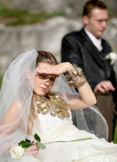 Cituji Romísek: Můj sen: Jednoduché dlouhé bílé šaty, rozpuštěné vlasy, kytka z koprenin, nebo vlčího máku a... bosé nohy v písku.
