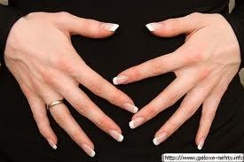 riešila som podobný problém - ak chceš klasickú francúzsku manikúru s krásnymi bielymi špičkami, o ktoré sa nemusíš starať, doporučujem umelé nechty (nepämatám sa, či boli gelové alebo iné, ale určite boli permanentné a umelé). Pamätám sa, koľko je so svadbou starostí, ja osobne som bola rada, že mám nechty pekne upravené, nezlomia sa a nemusím sa o ne starať.