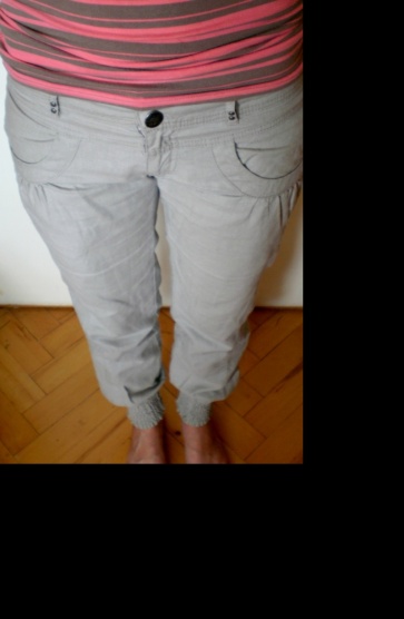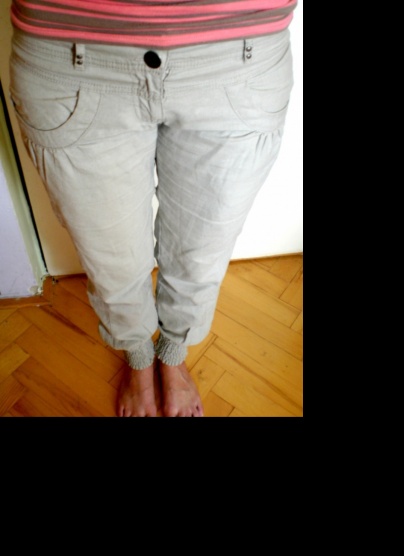 Prodám skvělé vypadající a pohodlné kalhoty zn. C&A, vel.S (36). Koupila jsem si je vloni v létě, byla v nich několikrát, ale letos jsem zhubla a už mi nesedí, plandají mi na zadku a celkově jsou mi moc volné