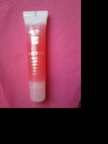 Lancome Juicy tubes 14 Framboise, lesk není výrazný, je na rtech lehounce do červena, není typicky třpytivý, má pouze sem tam nějaké třpytky. Je nový, pouze vyzkoušený. Odstín nejlépe vystihuje druhá fotka.