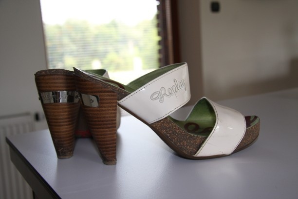 Prodávám krásné dřeváčky z Replay.Barvička je bílá,lehce do krémova.Nesou běžné známky nošení.Doporučuji na nožku přesně 36.