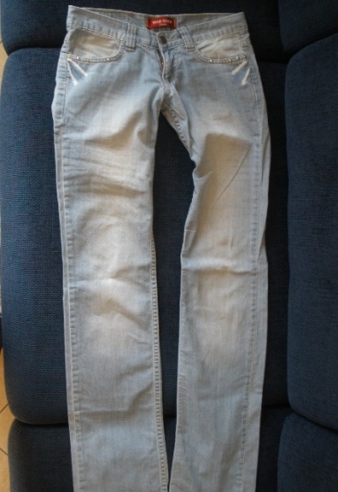 Prodám krásné světlé nízké rifle,téměř nenošené,velikost 34. míry: pas 76 cm, boky 90 cm, celková délka 105 cm, přední sed 17 cm, zadní sed 28 cm.