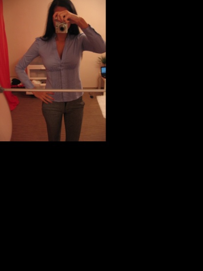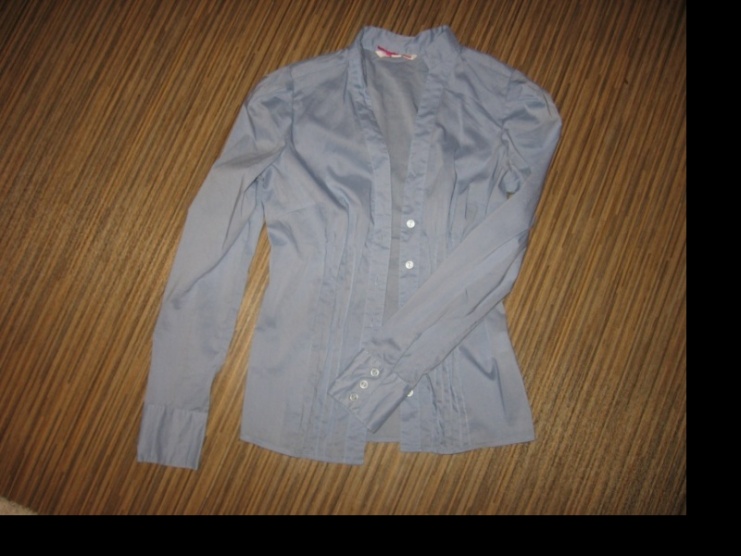 Řasení na přední straně, zapínání na knoflíčky, u rukávů širší manžety.