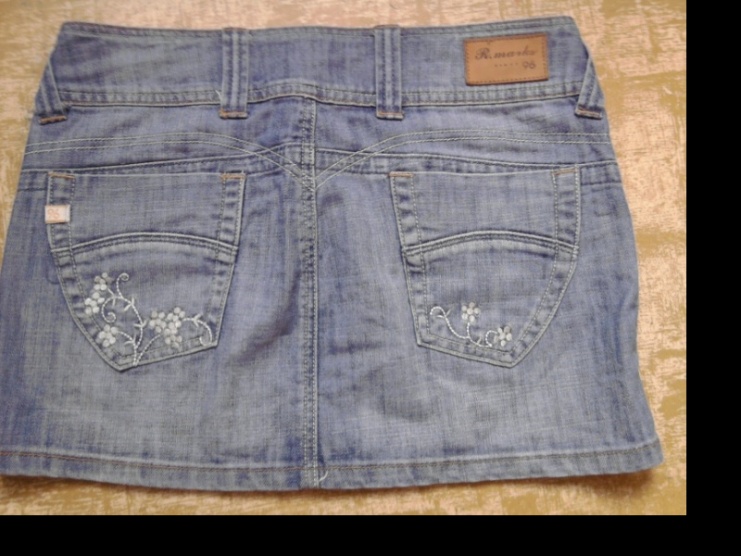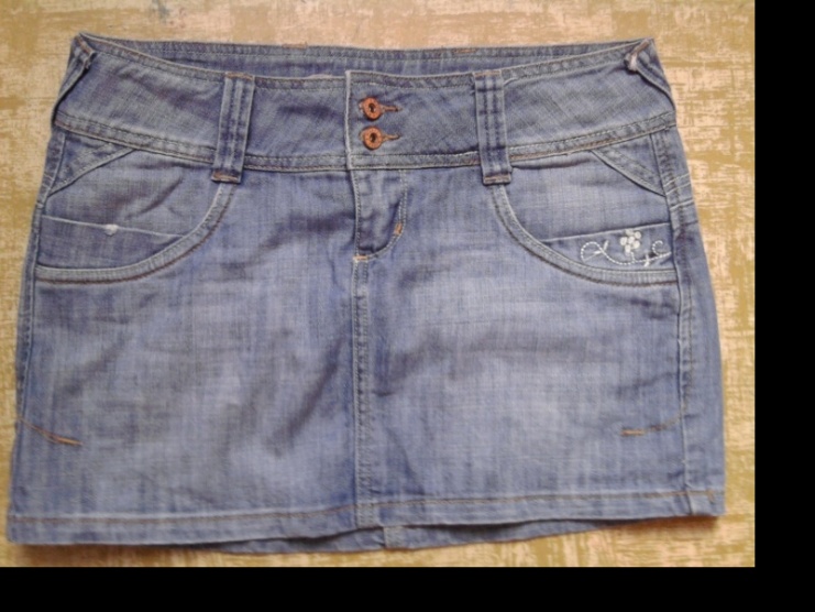 Prodám sv. modrou nošenou sukni zn. R.Marks. Měřím 170 cm a je mi do půlky stehen. Na kapsách vyšity kytičky. Barva odpovídá fotkám. Foceno mobilem, foťák bohužel nefunguje. cena 200+ poštovné