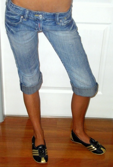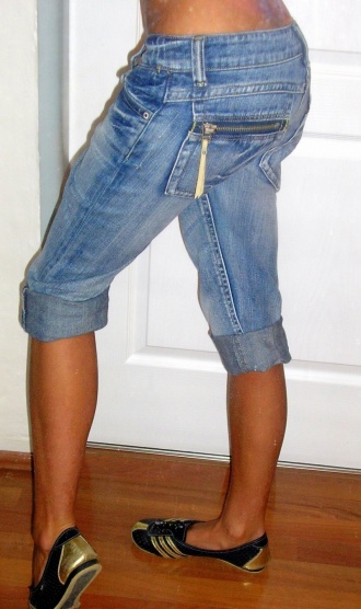 Prodám modré džínové tříčtvrteční kalhoty. Velikost je uvedena 34, ale řekla bych, že je to volnější 36ka. Mají snížený pas.