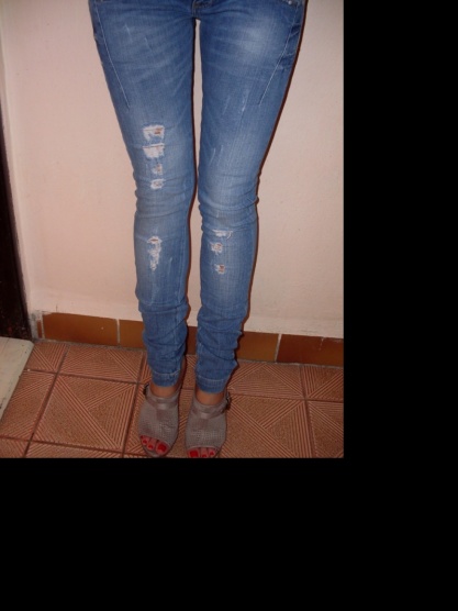 Úzké, modní trhané, krásně sedí.