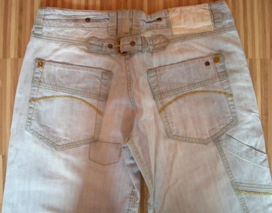 Super džíny na jaro, podzim. Lehoučké, krásně střižené. Zlaté doplňky. Rozmery: 39 pas, 49 boky, 98 délka. Cena 150 vč. pošty.
