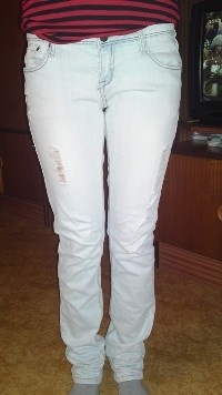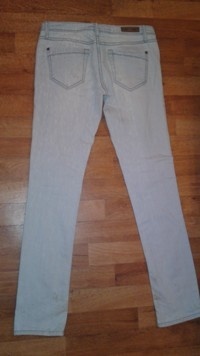 Prodám džíny zn. Amisu, nošené, ale v super stavu. Jen na nohavicích jsou lehce ušpiněné (viz foto), ale není to skoro vůbec vidět. Vel. 29 (klasická velikost 34-36).