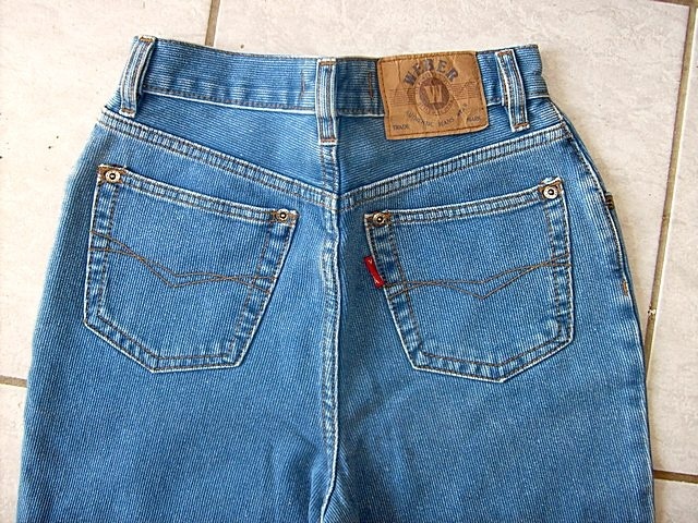 Nové rifle s jemným proužkem ne manžestr, spíš dekorace, krásné modré barvy, foto je celkem přesné.